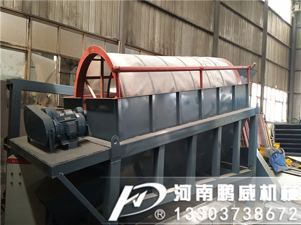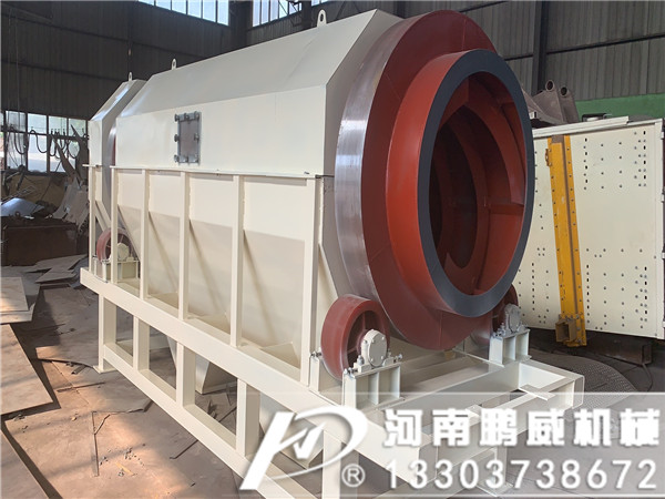 滾筒篩是通過變速箱式減速系統(tǒng)對設(shè)備中心分離筒實(shí)行合理旋轉(zhuǎn),中心分離筒是由若干個圓環(huán)狀扁鋼圈組成的篩網(wǎng),中心分離筒安裝是與地平面呈傾斜狀態(tài),工作中物料從中心分離筒上端進(jìn)入筒網(wǎng),在分離筒旋轉(zhuǎn)過程中,細(xì)物料自上而下通過圓環(huán)狀扁鋼組成的篩網(wǎng)間隔中得到分離,粗物料從分離筒下端排出進(jìn)入粉碎機(jī)。設(shè)備中設(shè)有板式自動清篩機(jī)構(gòu),在分離過程中,通過清篩機(jī)構(gòu)與篩體的相對運(yùn)動,由清篩機(jī)構(gòu)對篩體進(jìn)行連續(xù)“梳理”,使篩體在整個工作過程中始終保持清潔,不會因篩孔堵塞而影響篩分效率。軸器連接在一起,驅(qū)動滾簡裝置繞其軸線轉(zhuǎn)動。設(shè)備工作后,物料進(jìn)入滾筒裝置后,由于滾筒裝置的傾斜與轉(zhuǎn)動,使篩面上的物料翻轉(zhuǎn)與滾動,使合格物料(篩下產(chǎn)品)經(jīng)滾筒外圓的篩網(wǎng)排出,不合格的物料(篩上產(chǎn)品)經(jīng)滾筒未端排出。在滾動過程中篩子上部的拍打架會直拍打滾筒裝置,防止物料卡在篩網(wǎng)中影響篩子使用。原料送入圓筒中之后,會被旋轉(zhuǎn)的圓筒帶起并落下,這種行為將一直反復(fù)地沿著圓筒運(yùn)行著,細(xì)的顆粒通過篩孔并從導(dǎo)料槽排出,而粗的顆粒則一直向前運(yùn)動直到從圓筒篩的尾部排出。同時滾筒篩的噴淋在滾筒裝置轉(zhuǎn)動過程中對篩子表面及物料進(jìn)行沖洗,使物料更干凈。